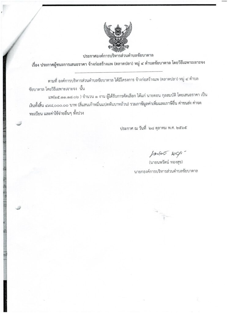ประกาศผู้ชนะการเสนอราคา จัดหาเต้นท์และเก้าอี้